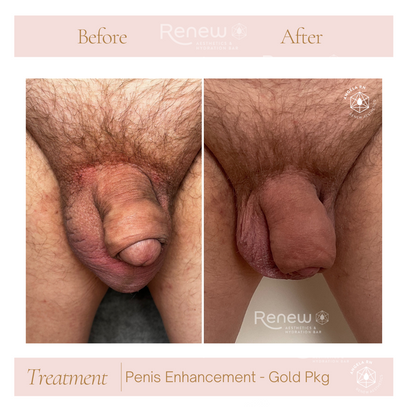 Our Gold Package includes a PShot™, 300 units of Botox to the shaft, 100 units Botox to the scrotum, stem cells and 10 - 12 syringes of Dermal Filler to both the corpus(shaft) and glans (head) of the penis.